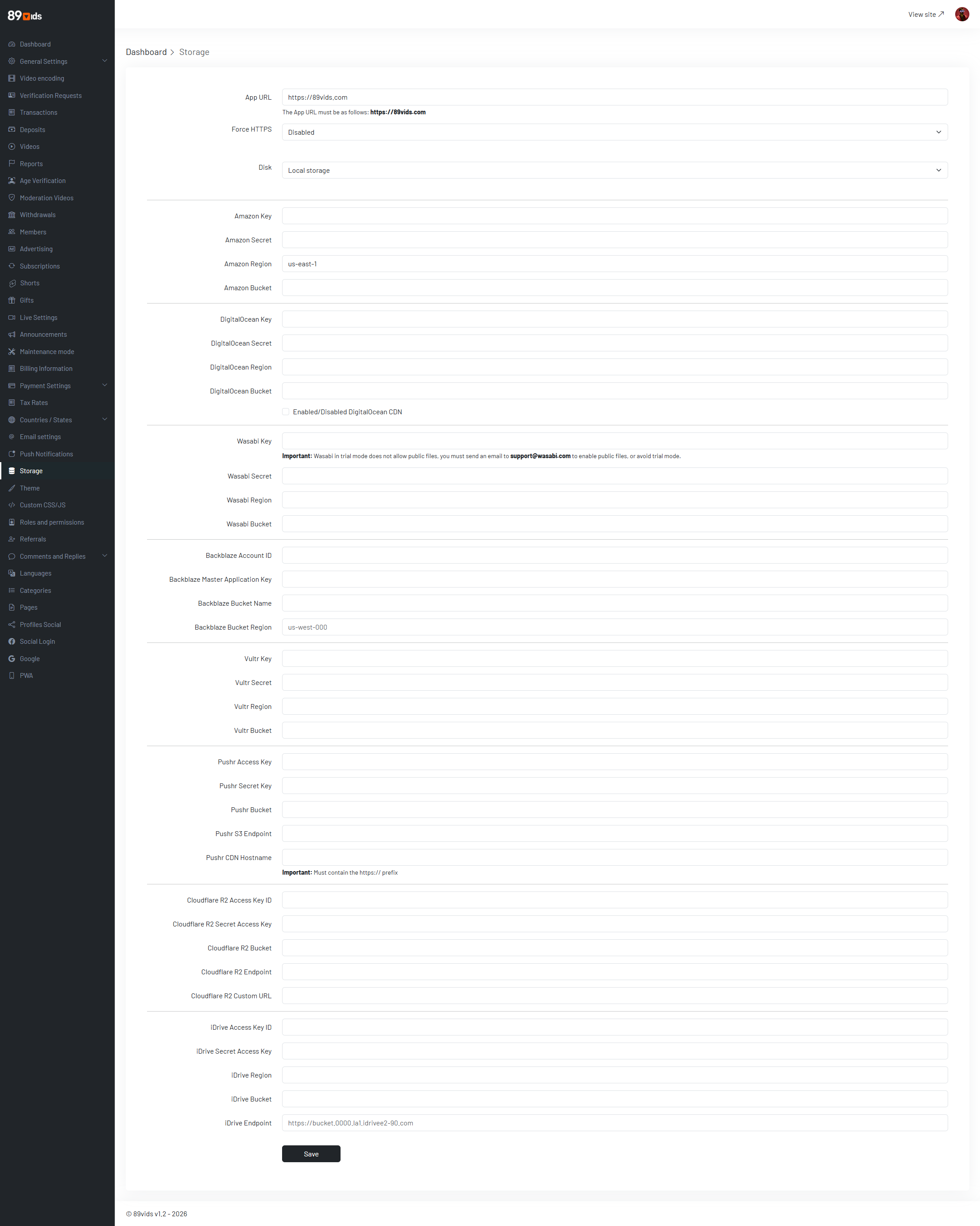 - Storage (Local, Amazon, DigitalOcean, Wasabi, Vultr, Backblaze B2 and others)
